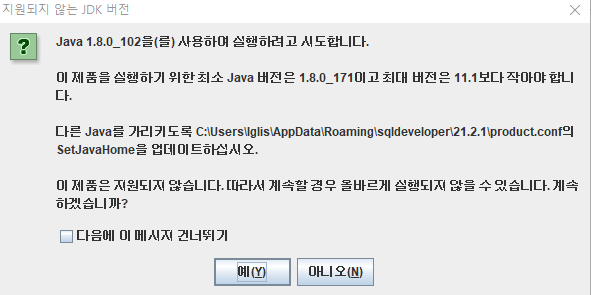 sql developer 버전을 최신 버전으로 업데이트 하려고 했다.