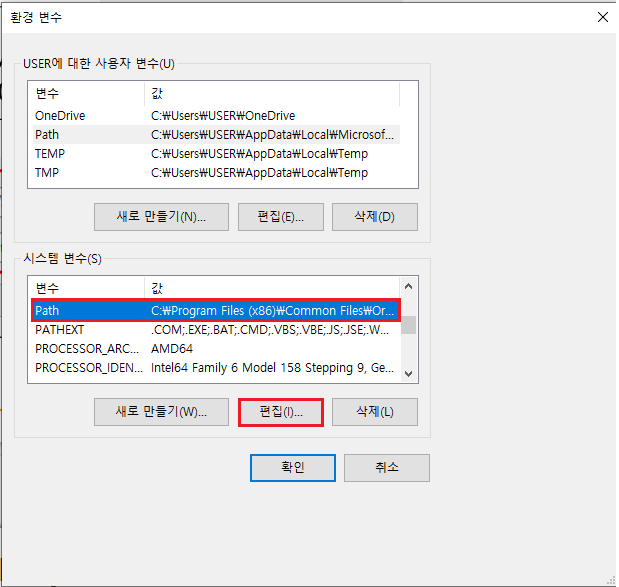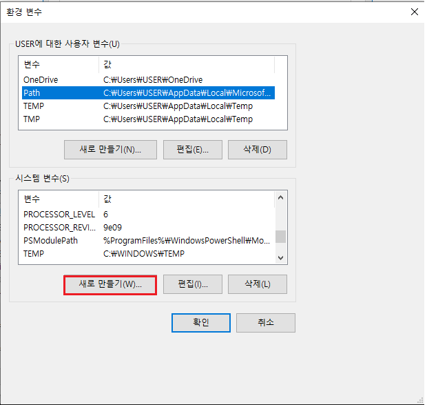 [환경변수 창 설정]