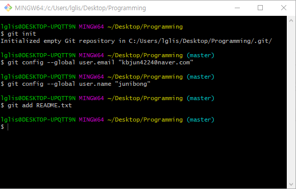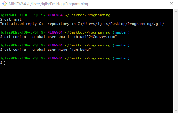 https://junibong.tistory.com/108git config --global user.email "kbjun4224@naver.com" git config --global user.name "junibong"