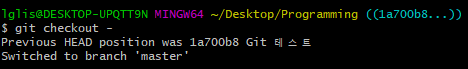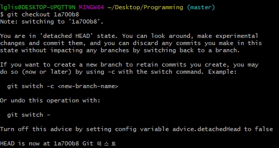 'HEAD is now at 1a700b8 Git 테스트' 라는 텍스트가 보이면 성공!!!!