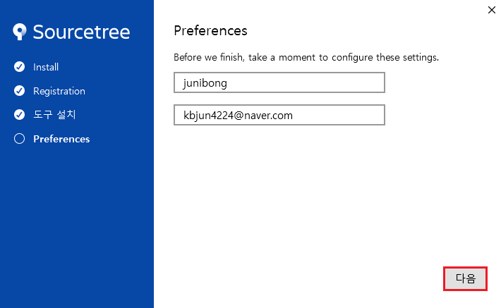 저는 Github과 동일한 메일과 이름을 쓰도록 하겠습니다.