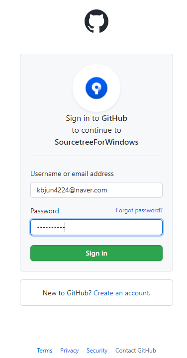 GitHub에서 가입한 계정정보를 입력해주면 됩니다.