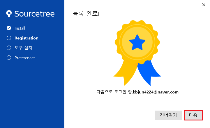 등록 완료가 된 후 [다음]을 클릭 합니다.