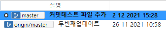 origin/master 의 경우 원격저장소 버전현재 커밋은 로컬저장소에 커밋된 상태이기 때문에 , 실제 원격저장소로 업로드를 위해 푸시를 해야됩니다.