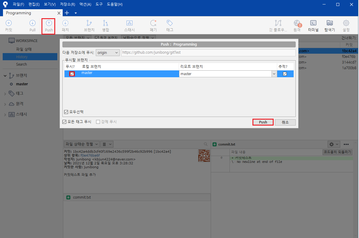 - [Git] 7.소스트리로 커밋 만들고 푸시하기2021년 12월 02일 15시 40분 35초에 업로드 된 글입니다.작성자: 봉주니