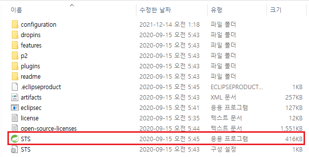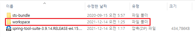 아래 zip파일을 다운로드 해줍니다. (Eclipse 4.15, STS 3.9.14 버전)