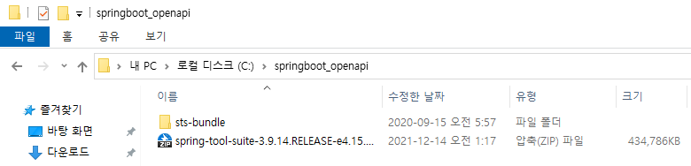 springboot_openapi 라는 폴더를 생성하고, 다운로드 받은 파일의 압축을 풀어줍니다.(저는 반디집사용합니다.)