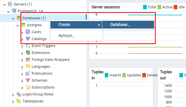 Databases 우클릭 후 Create -> Database... 를 클릭합니다.
