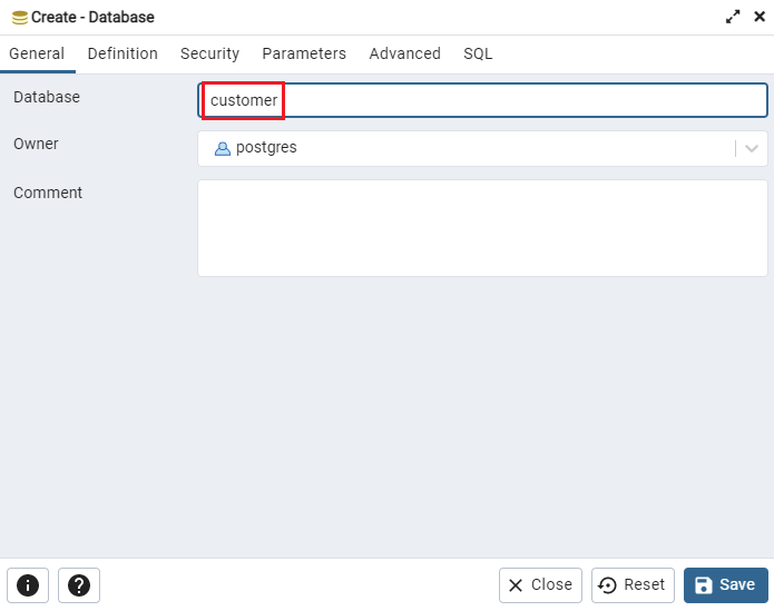 Database 이름을 적고, SAVE 버튼을 눌러서 생성 가능합니다.