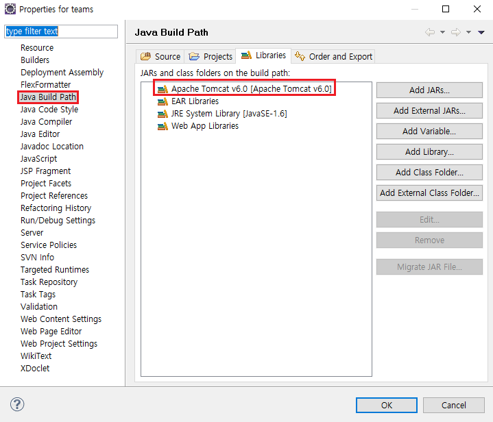 톰캣은 정상적으로 등록되어 있었다.