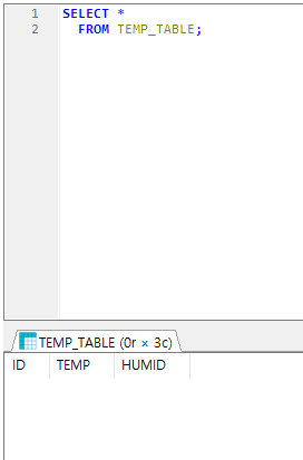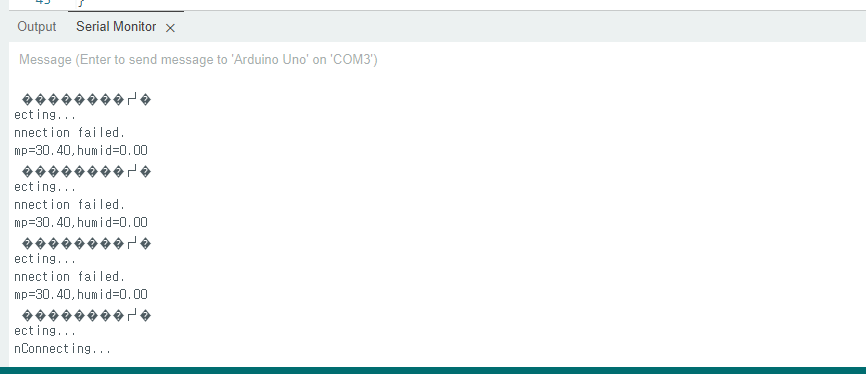 #include "DHT.h" #include "Ethernet.h" #include "MySQL_Connection.h" #include "MySQL_Cursor.h" #define DHTTYPE DHT11 #define DHTPIN 4 DHT dht(DHTPIN , DHTTYPE); float temp; float humid; byte mac_addr[] = { 0xDE, 0xAD, 0xBE, 0xEF, 0xFE, 0xED}; IPAddress server_addr(127,0,0,1); char user[] = "root"; char password[] = "admin"; char INSERT_SQL[] = ""; EthernetClient client; MySQL_Connection conn((Client *)&client); void setup() { Serial.begin(115200); while(!Serial); dht.begin(); Ethernet.begin(mac_addr); Serial.println("Connecting..."); if(conn.connect(server_addr, 3306, user, password)){ delay(3000); }else{ Serial.println("Connection failed."); } } void loop() { temp = dht.readTemperature(); humid = dht.readHumidity(); Serial.print("temp="); Serial.print(temp); Serial.print(",humid="); Serial.println(humid); MySQL_Cursor *cur_mem = new MySQL_Cursor(&conn); sprintf(INSERT_SQL,"INSERT INTO db_temp.TEMP_TABLE(ID,TEMP,HUMID) VALUES ('TEST01',%f,%f)",temp,humid); cur_mem->execute(INSERT_SQL); delay(3000); }결과는 실패......