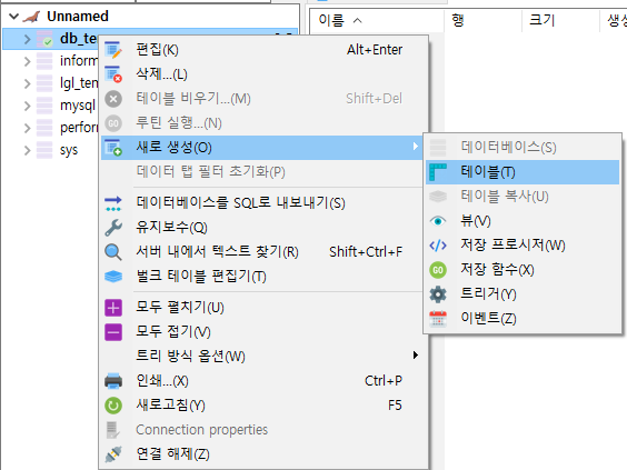 3. 데이터베이스 및 테이블을 생성합니다.