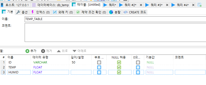 테이블 명 : TEMP_TABLE