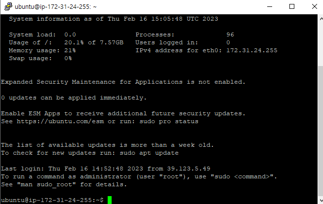 아래와 같이 login 정보는 ubuntu 를 입력한다.