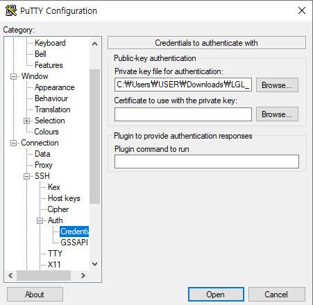 키페어를 Auth -> Credential 에 등록해야 접속이 가능하다.