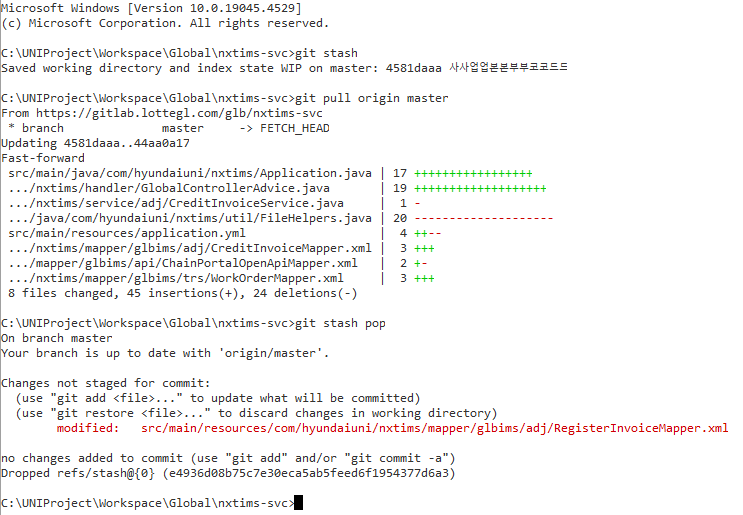 git stash2) master에서 pull을 진행한다.